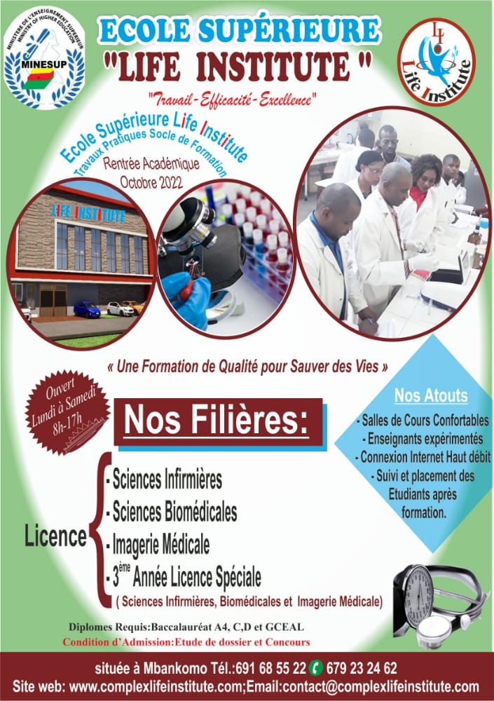 Nos félicitations aux différents candidats ayant été admis au concours pour le compte de Life Institute. Toutefois, pour vos amis et camarades malheureux à ce concours, une offre de formation alternative leur est réservée dans lle campus annexe du Complexe Life Institute, pour une inscription en licence professionnelle pour les bacheliers et dans les filières de formation professionnelle du MINEFOP pour les autres…